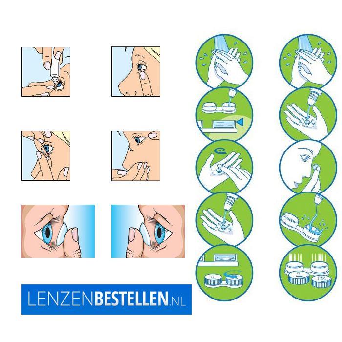 Was en droog je handen grondig voordat je je lenzen in- of uitdoet.